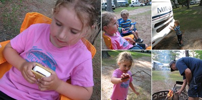 So I blogged while the kids were cashed out in the camper. By the time they got up, it was time for dinner and campfire – the latter Sophie was pretty excited about. She was definitely looking forward to making s’mores (which she doesn’t really like to eat), roasting marshmallows (which she doesn’t really like to eat and doesn’t get close enough to roast them), and just sitting around the campfire (after the roasting was done, she was ready for bed). The main thing is that she had fun. :)